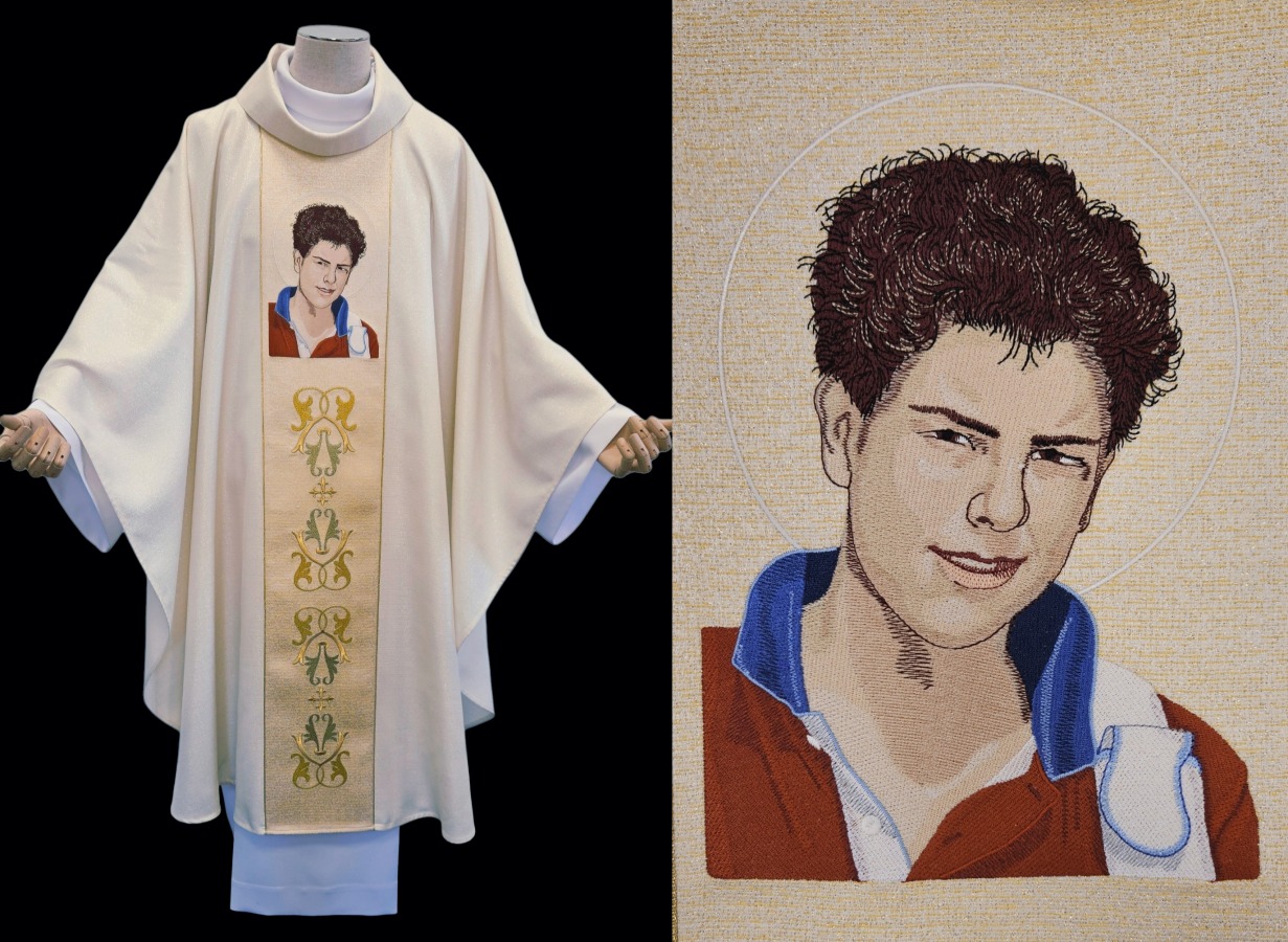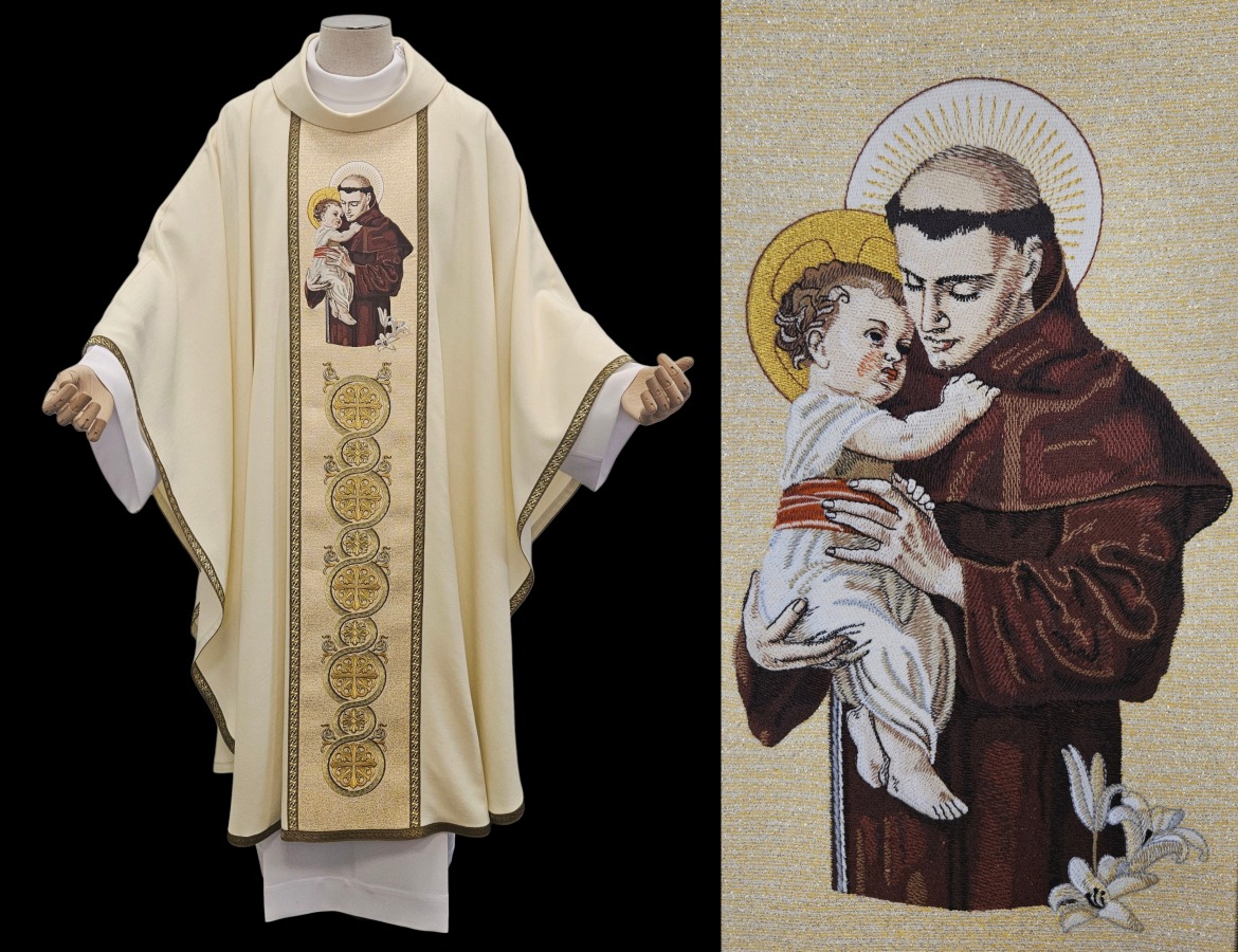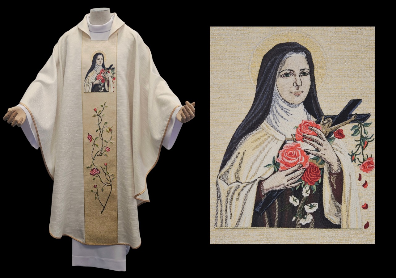 zobacz produkt... Ornat kapłański haftowany bez kołnierza ozdobiony haftowanym wizerunkiem Św. brata Alberta Chmielowskiego 2-99
