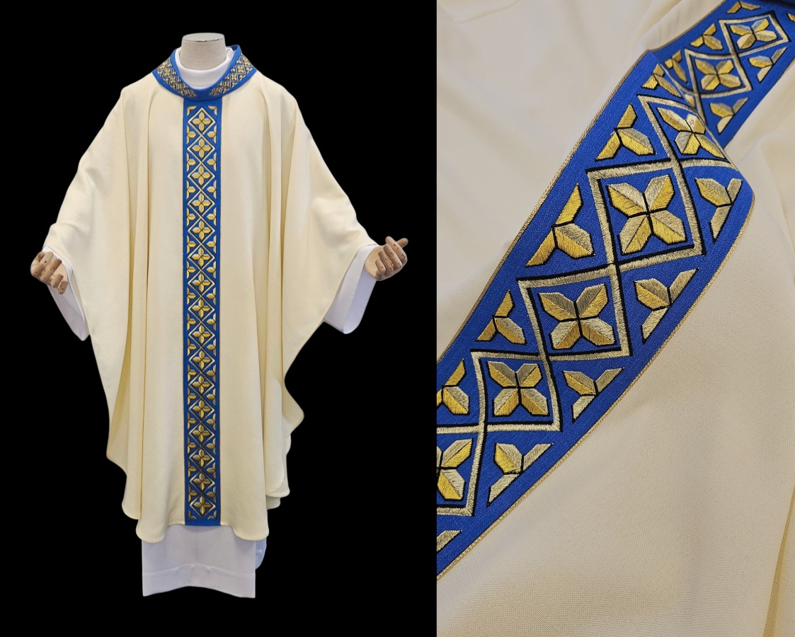 Ornat Maryjny z bogato haftowanym kołnierzem i ornamentem z krzyży na pasie 2-701 M