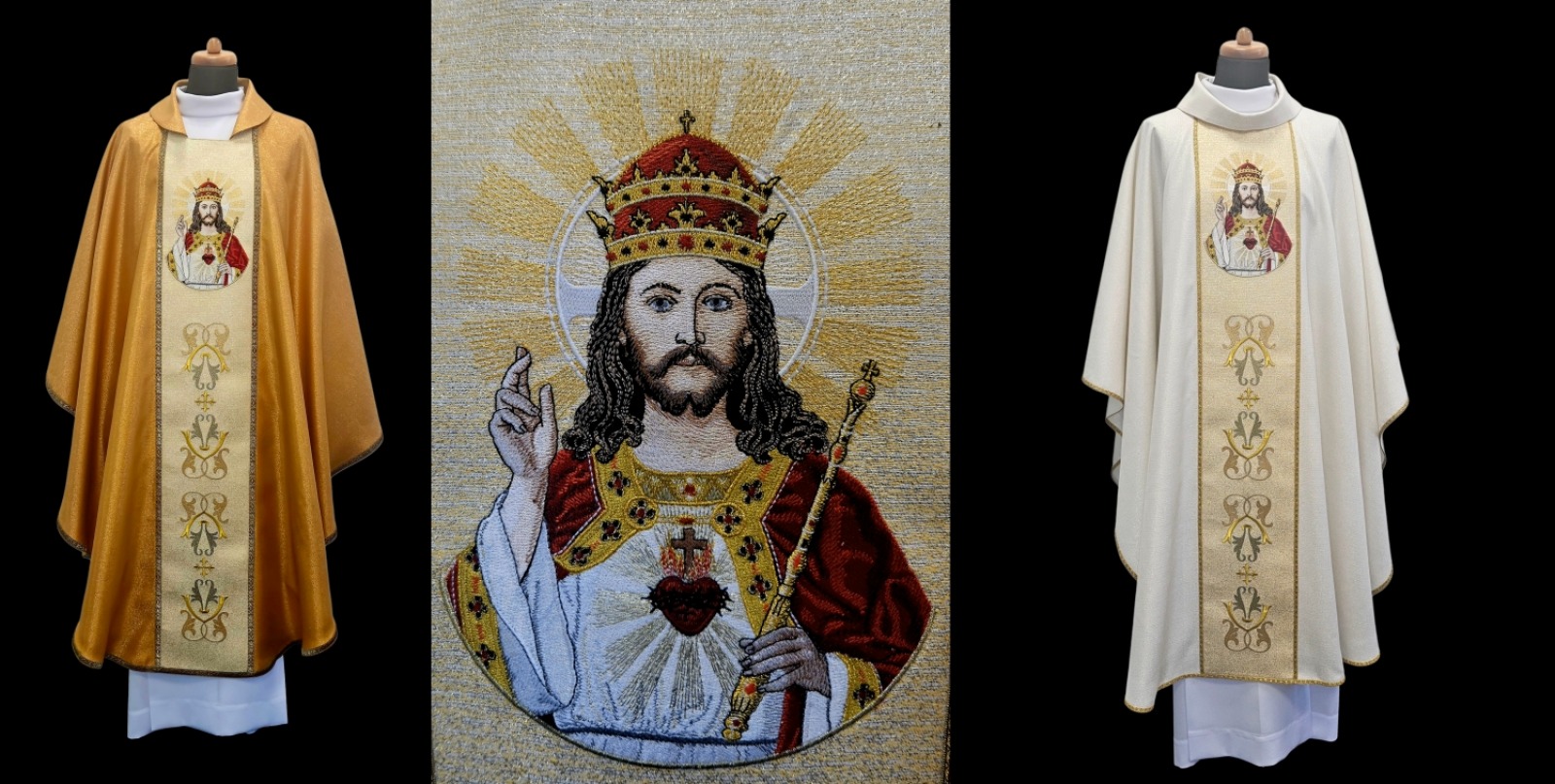 zobacz produkt... Ornat liturgiczny z pasem tkanym na aksamicie 2-311 we wszystkich kolorach liturgicznych