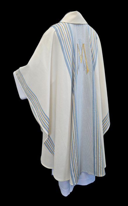 Casula mariana in lana con simboli mariani ricamati (80% lana, 20% poliestere)